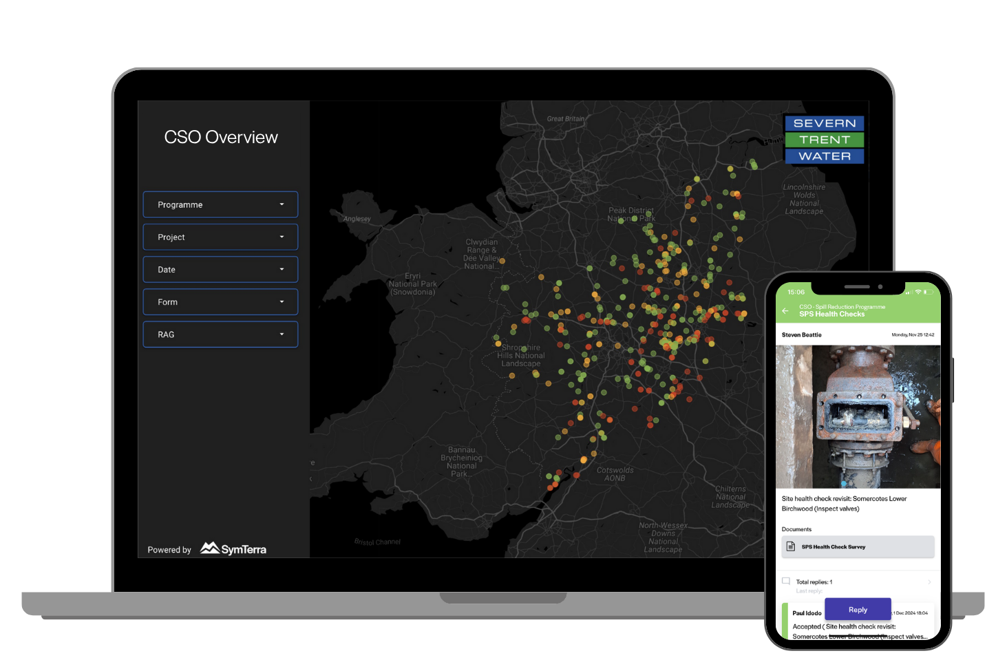“STW have found SymTerra to be a really useful tool in bringing updates from site into the office, enabling updates and information to be shared quickly and easily. A particular success of its use has been within the CSO teams where 100s of surveys across a wide range of geographical sites were undertaken by our supply chain and fed in quick results to enable our teams to develop designs and provide solutions.”